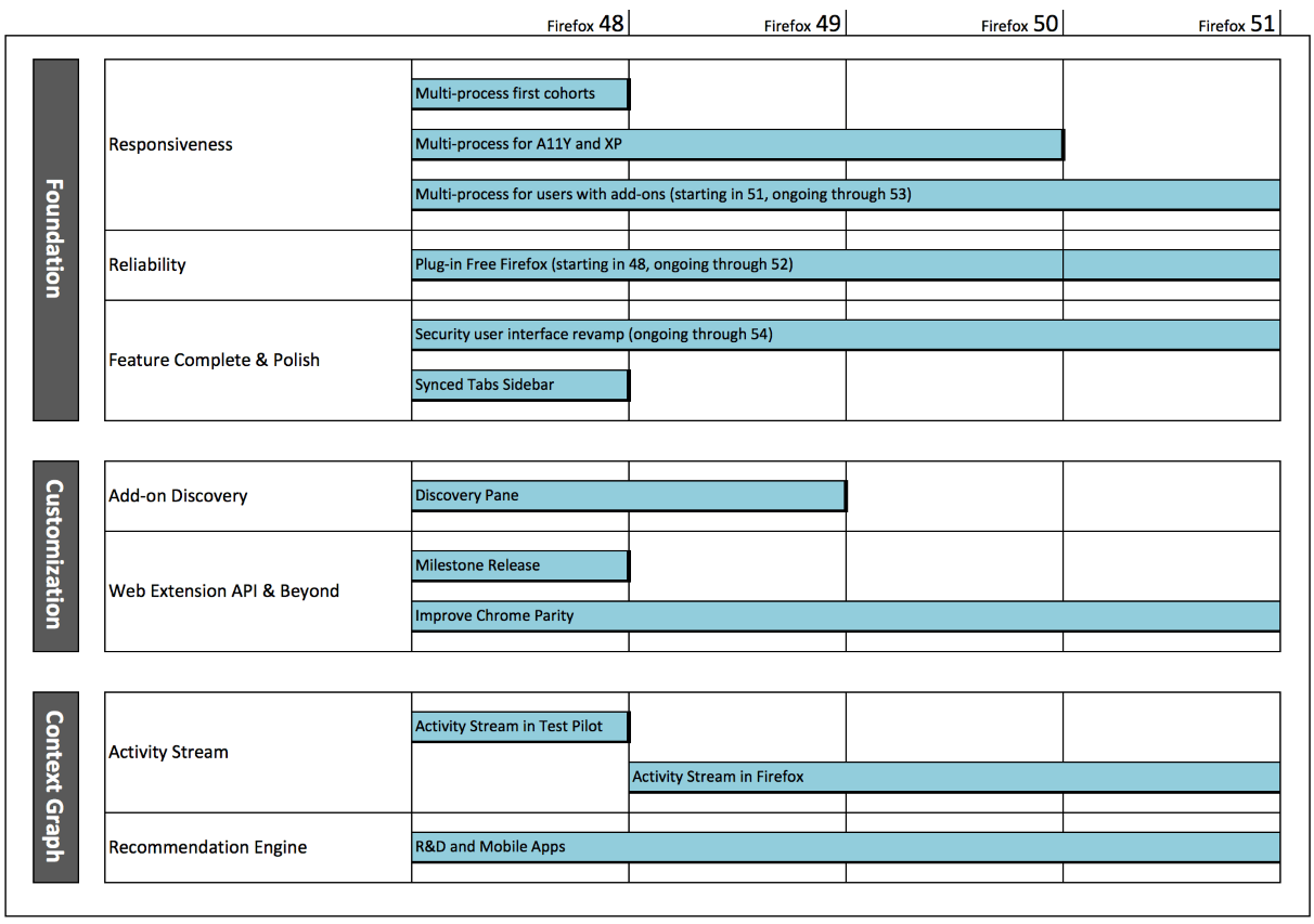 Nowości, które chcą wdrożyć developerzy Firefoxa zostały podzielone na trzy grupy: